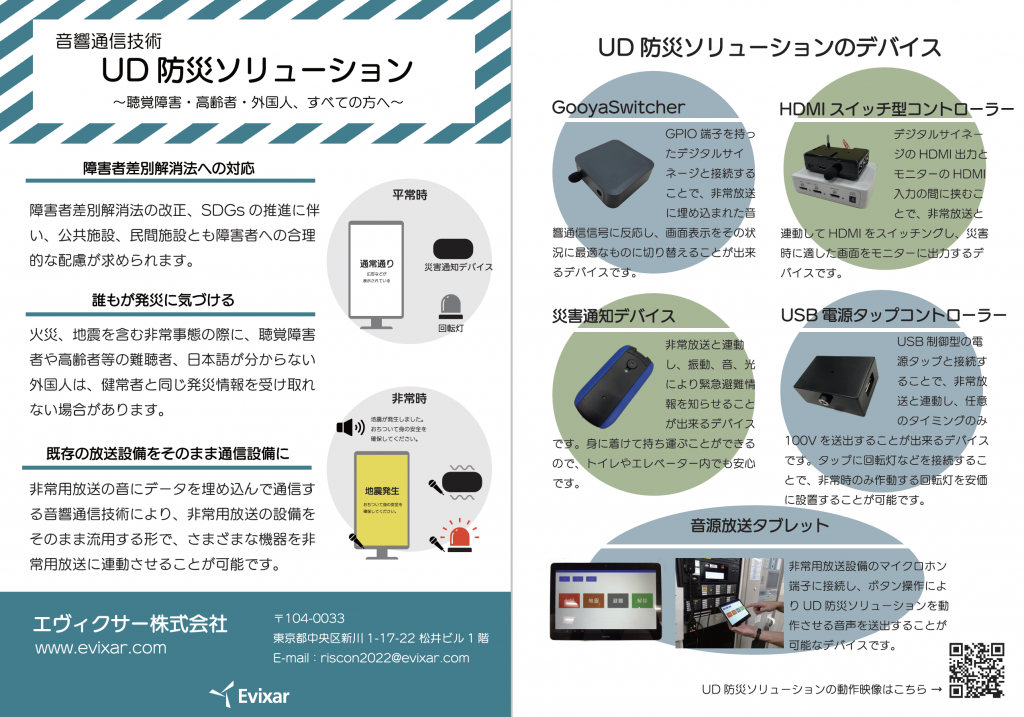 エヴィクサー、音響通信による「UD防災ソリューション」について『危機管理産業展(RISCON TOKYO)2022』出展のお知らせ