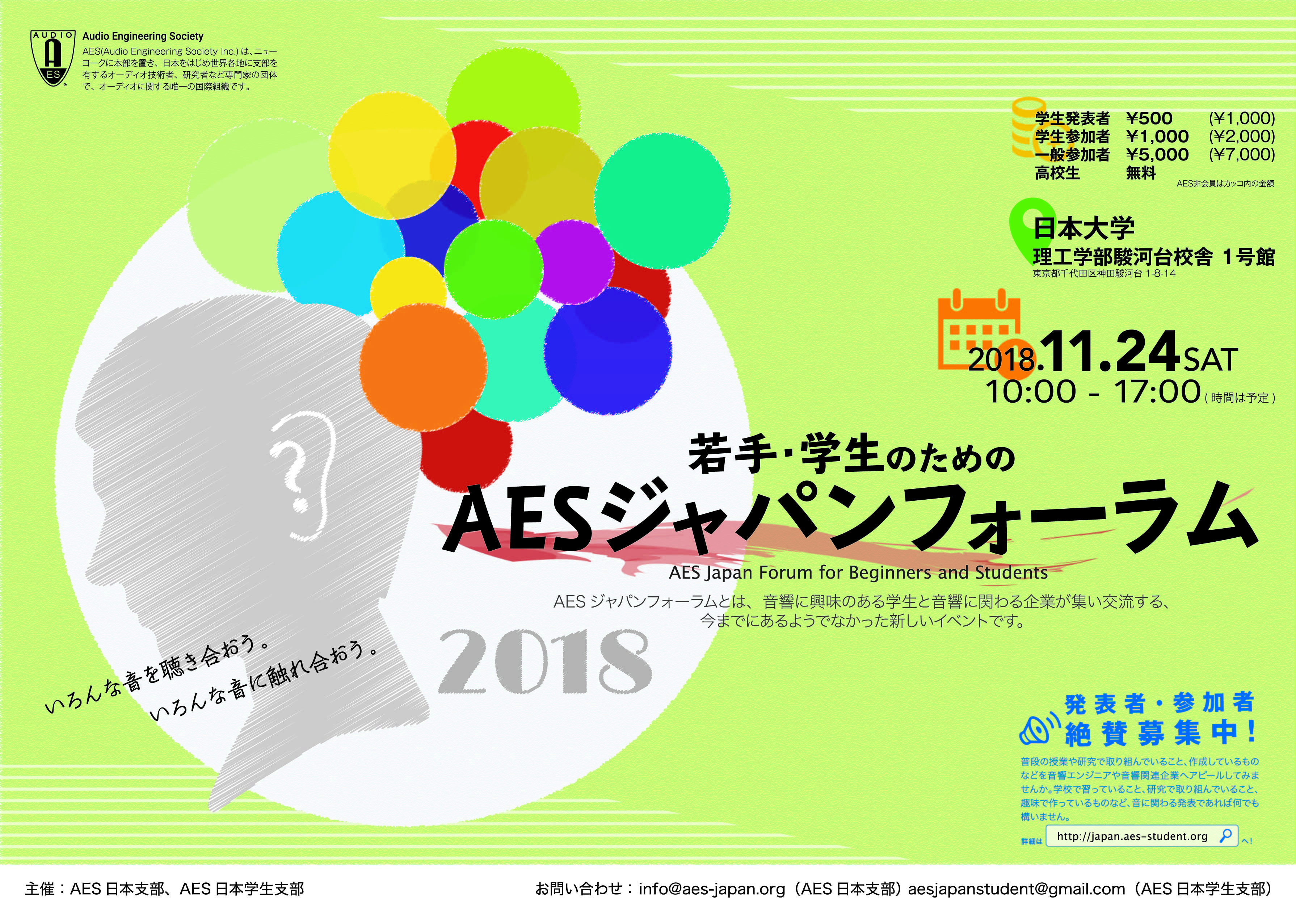 → 「若手・学生のためのAESジャパンフォーラム2018」Webサイト(外部サイトへのリンク)