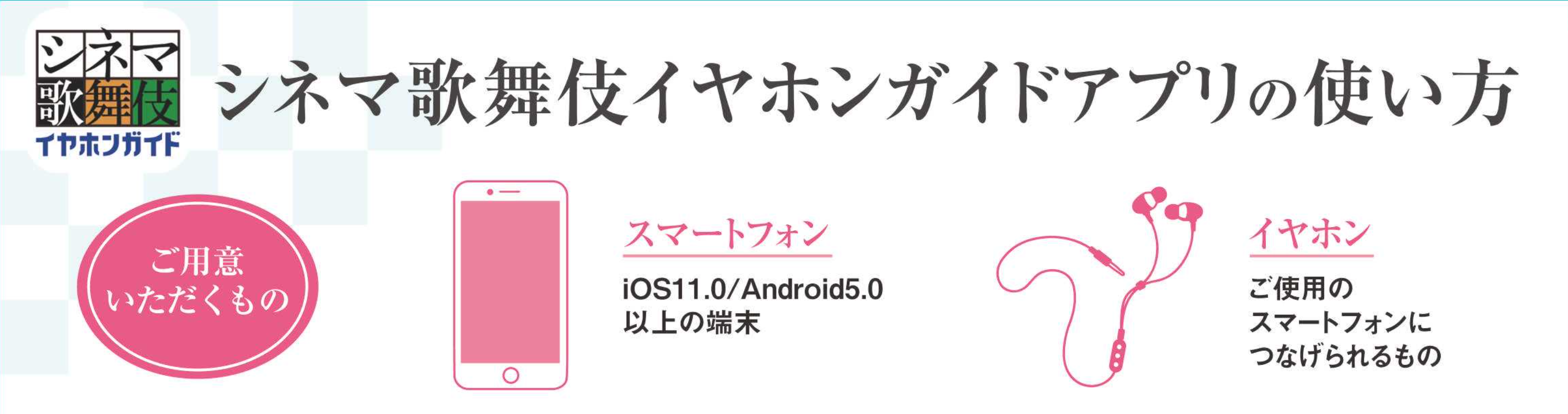 お手持ちのスマートフォンとイヤホンを利用してシネマ歌舞伎でもご利用いただけるようになりました。