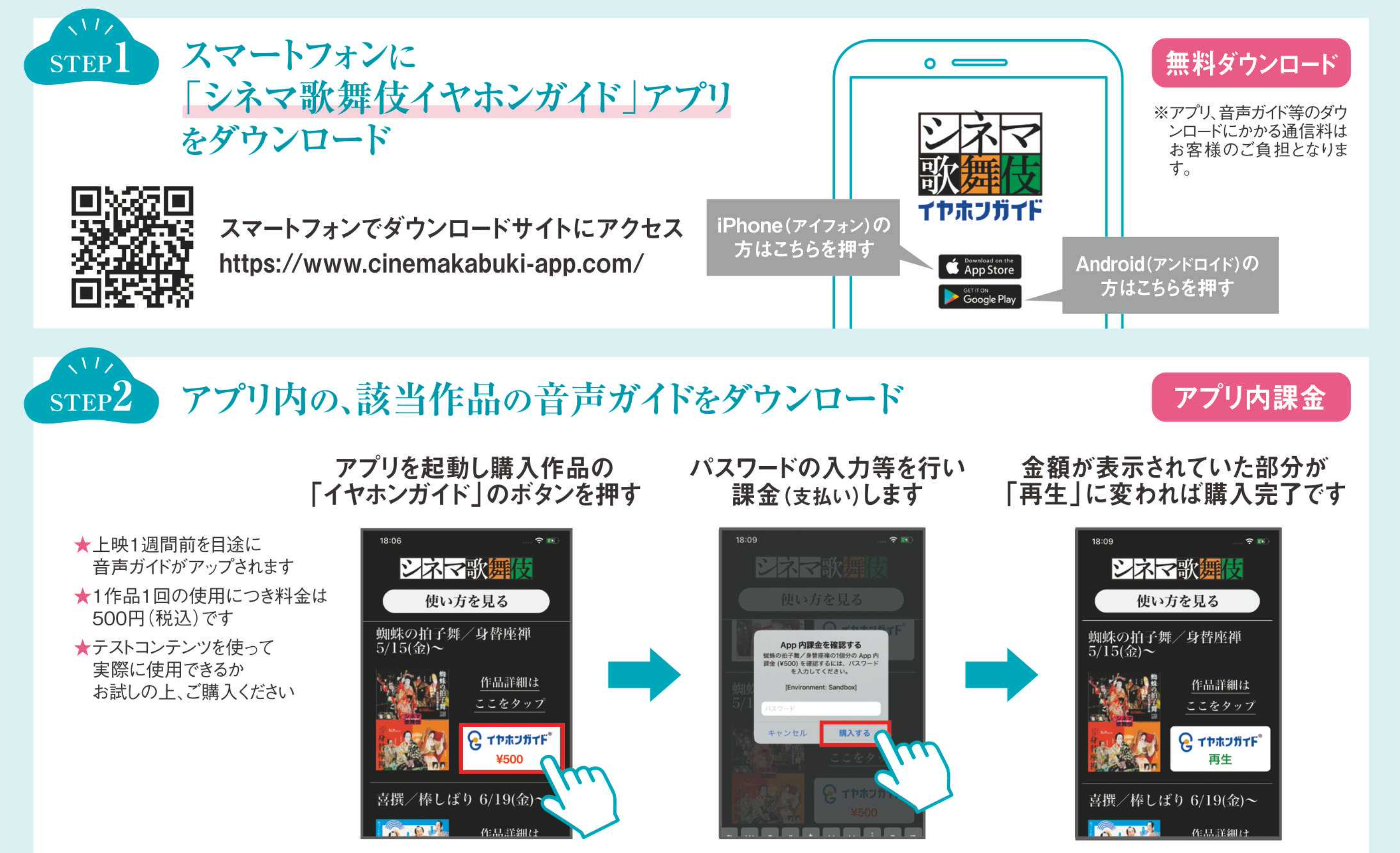【シネマ歌舞伎イヤホンガイドアプリ】の利用方法