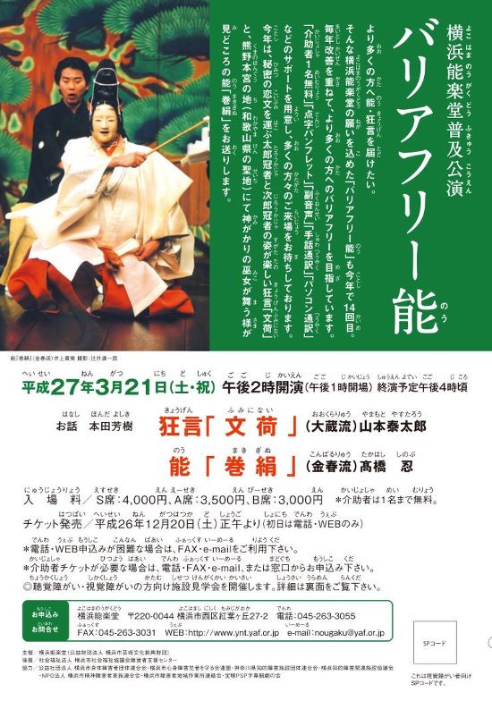 | URL | 横浜能楽堂普及公演 バリアフリー能 http://ynt.yafjp.org/(外部サイト) |