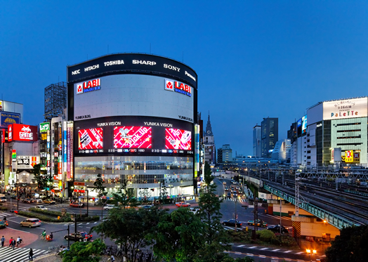 株式会社ユニカが提供する大型街頭ビジョン。100㎡×3面の高精細のLEDは、その迫力により高い訴求力が見込めるだけでなく、3面映像による演出の多様性、選択肢の広さに加えて、リアルタイムの情報提供にも対応するなど、新宿ランドマークにふさわしい多彩なコンテンツを提供。